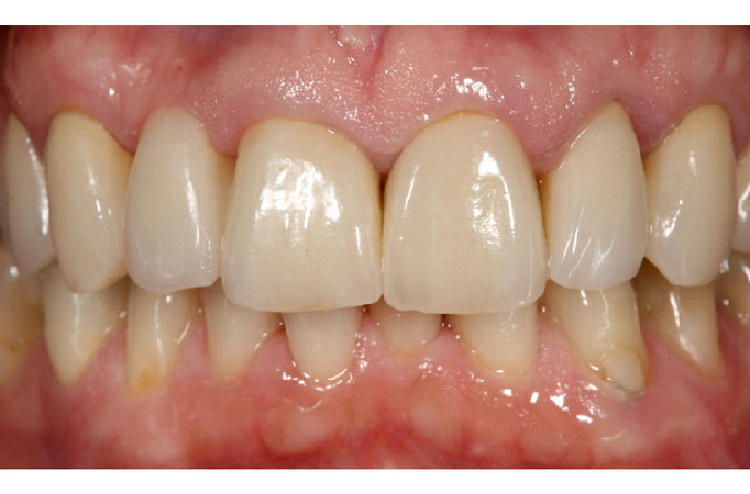 natural appearing crowns but weaker than reinforced crowns. They are built up of many layers of tooth coloured porcelain and are translucent and very tooth-like indeed.